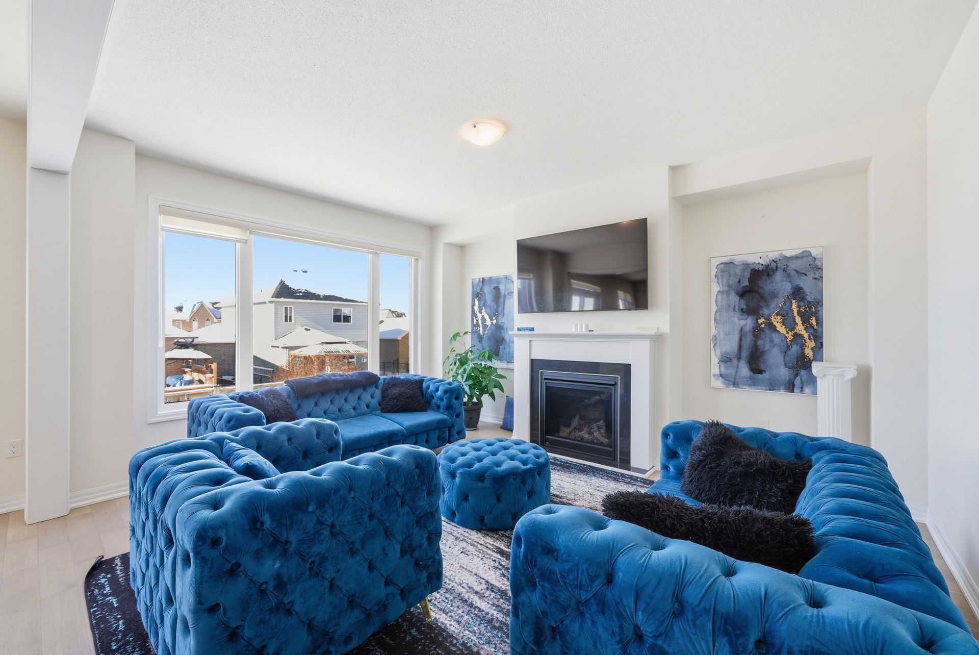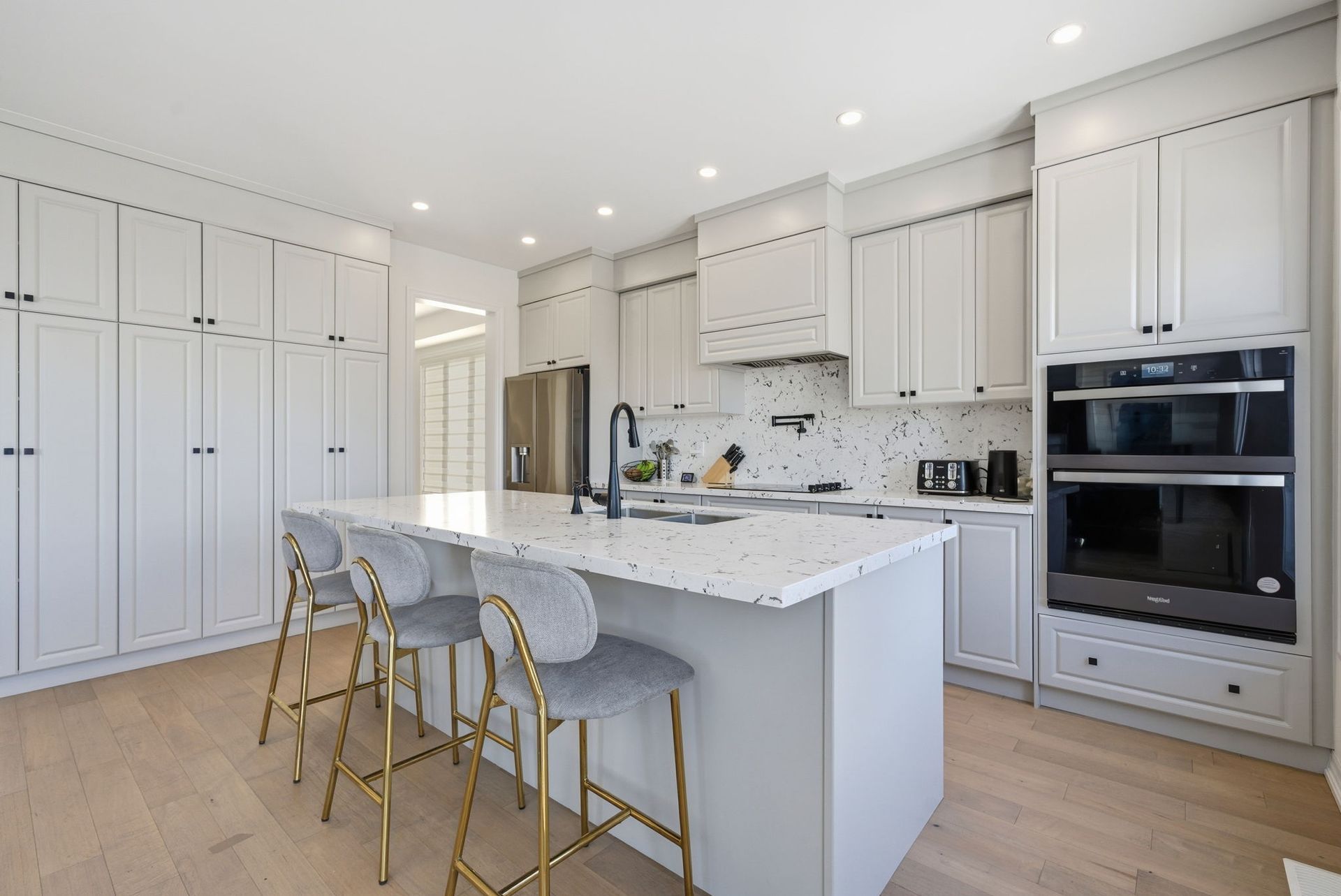 The main floor impresses from the moment you step inside, featuring an OPEN-CONCEPT LAYOUT ideal for both family life and entertaining. The GOURMET KITCHEN is a true showpiece — showcasing sleek cabinetry, abundant storage, and an EXQUISITE FULL-HEIGHT SLAB BACKSPLASH THAT FLOWS SEAMLESSLY INTO THE COUNTERTOPS, creating a look that’s both elegant and contemporary. Gather around the island, enjoy casual meals, or unwind by the COZY GAS FIREPLACE that anchors the inviting living area.