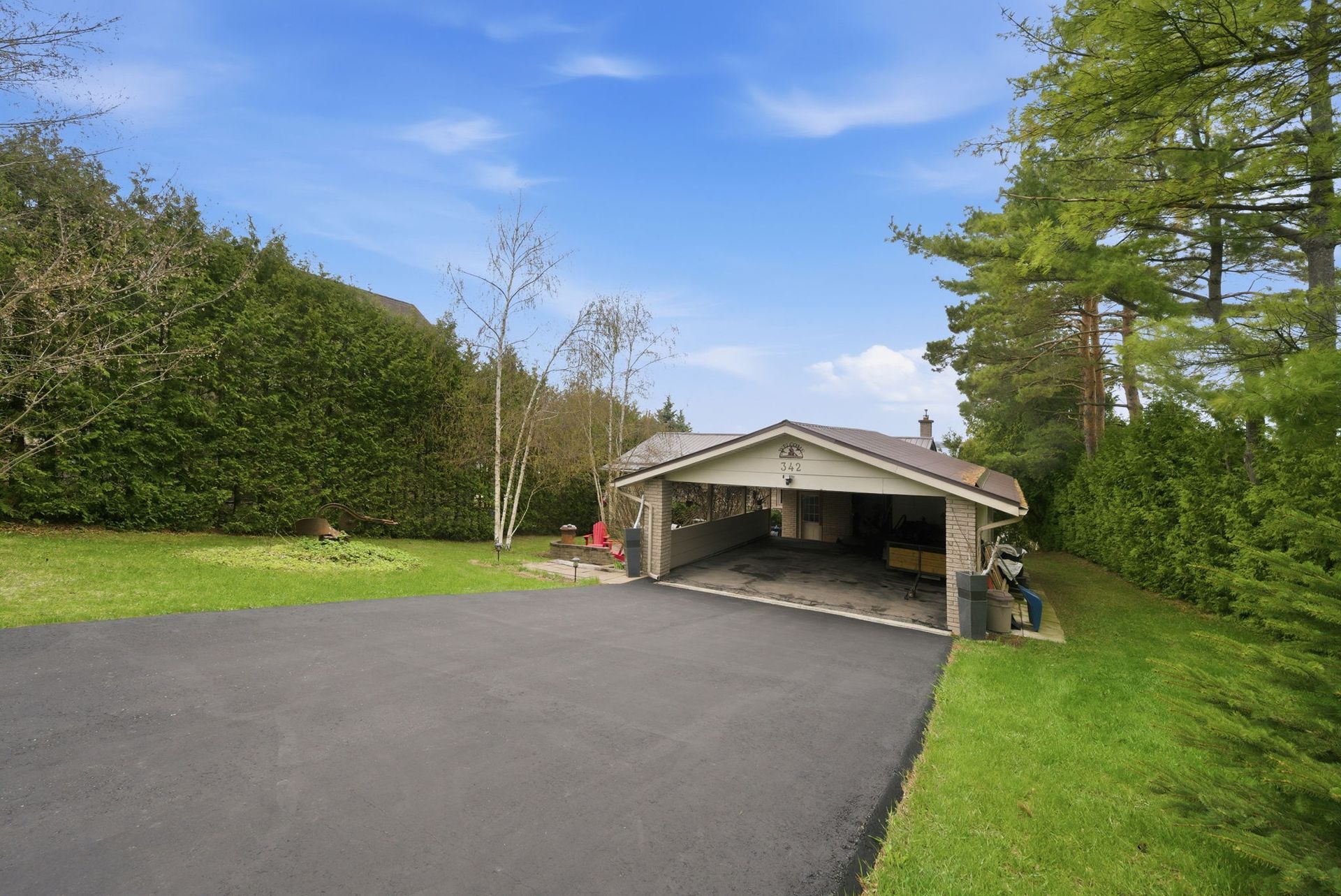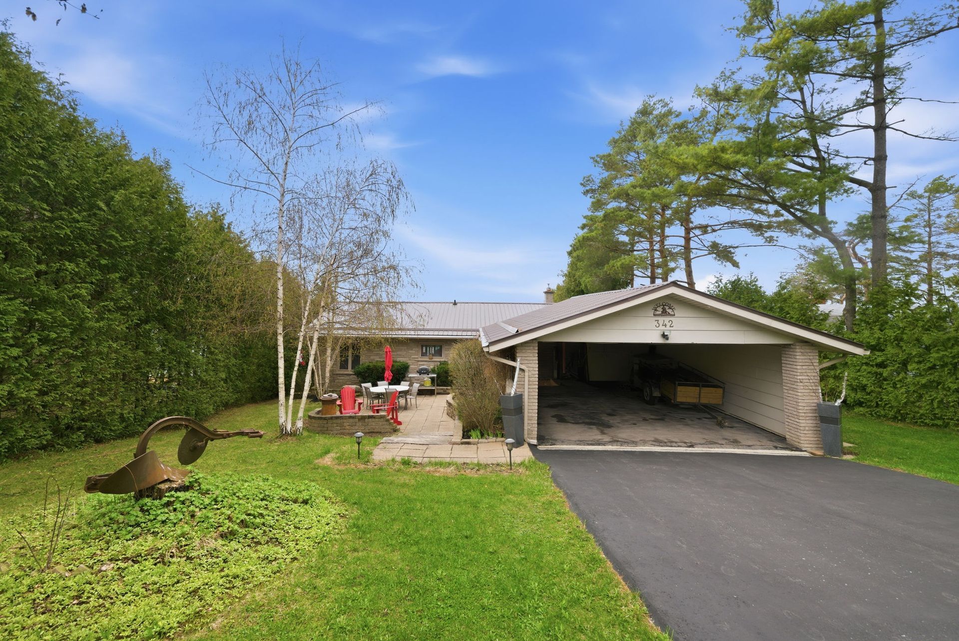 Exterior features on this nearly HALF ACRE LOT include natural shoreline, interlock firepit area, aluminum dock, abundant parking, turnaround driveway and carport with bonus attic storage.